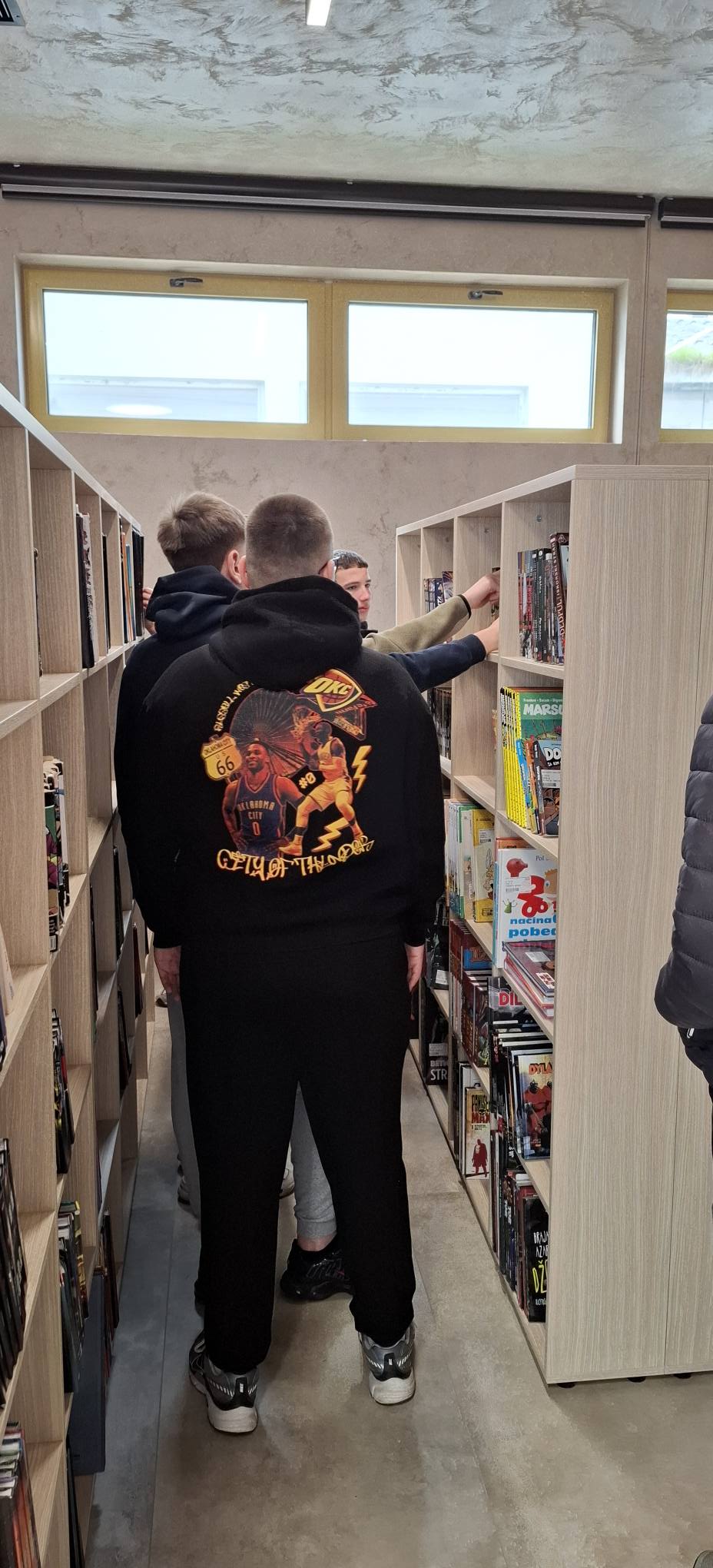 Данас су наши гости били ученици Iц Гимназије "Б. Петронијевић" (спортско одељење). Обишли смо наше савремено здање, упознали их са фондовима, могућностима за рад и усавршавање у Библиотеци, говорили смо о важности образовања, културе и дигиталне писмености. Обишли су и нашу тренутну изложбу слика и Завичајни фонд, а посебно су их заинтересовала стрип издања.