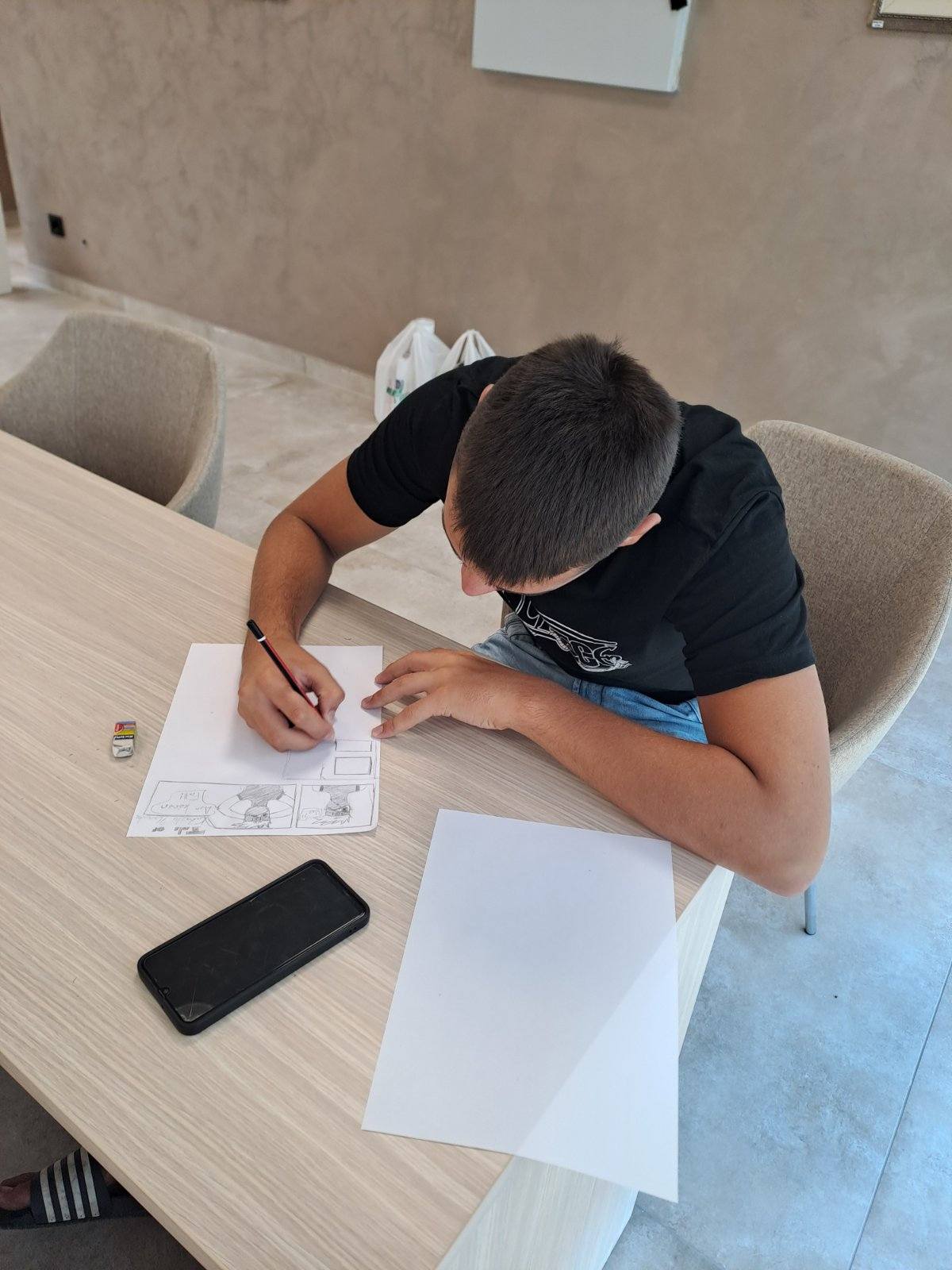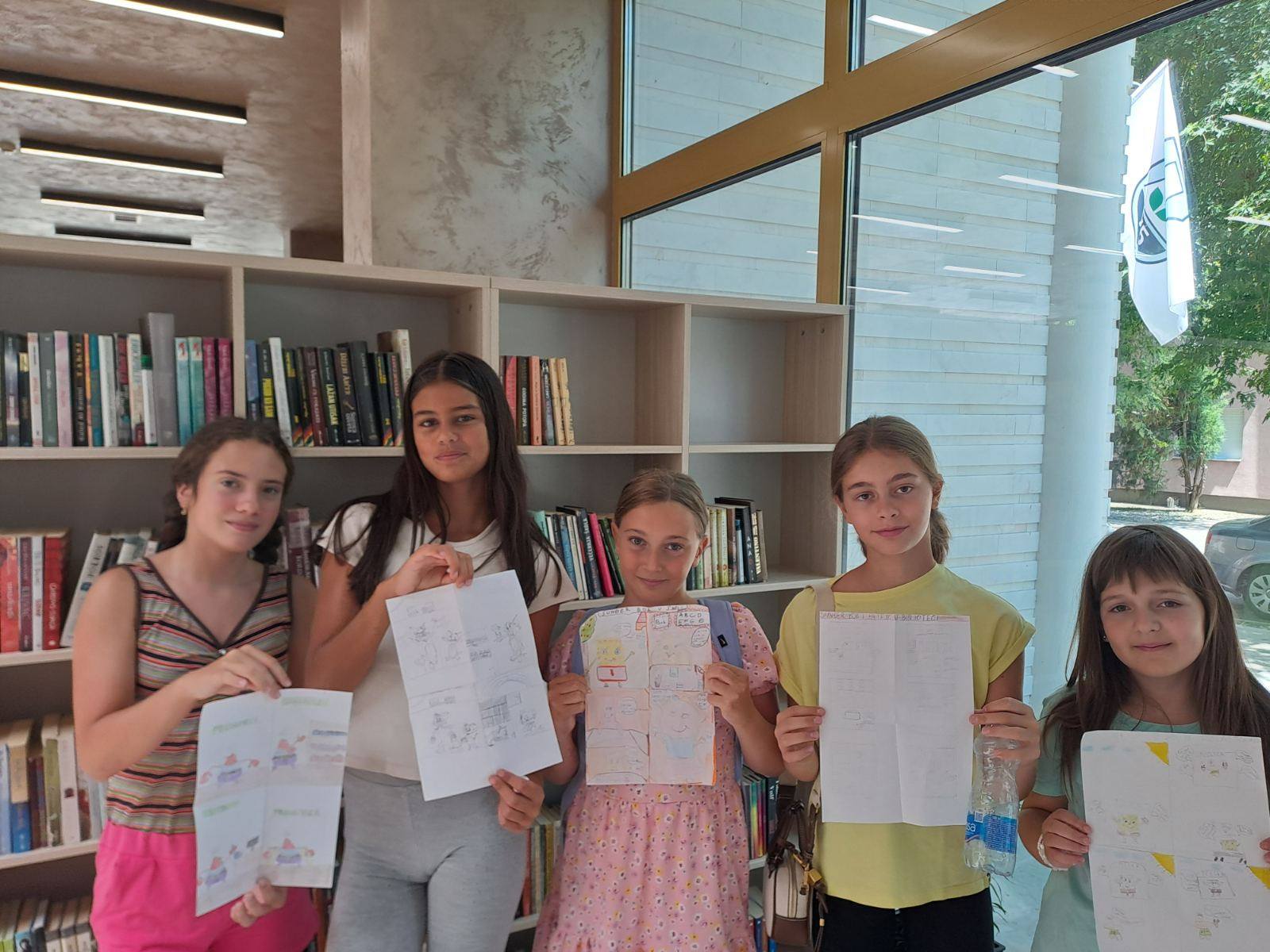 Данас је одржана још једна летња радионица у нашој Библиотеци. Полазници су били ученици старијег школског узраста, а тема радионице је била стрип. Инспирисани су књижевним делима али и филмовима и слично, полазници су их радили по својој жељи.