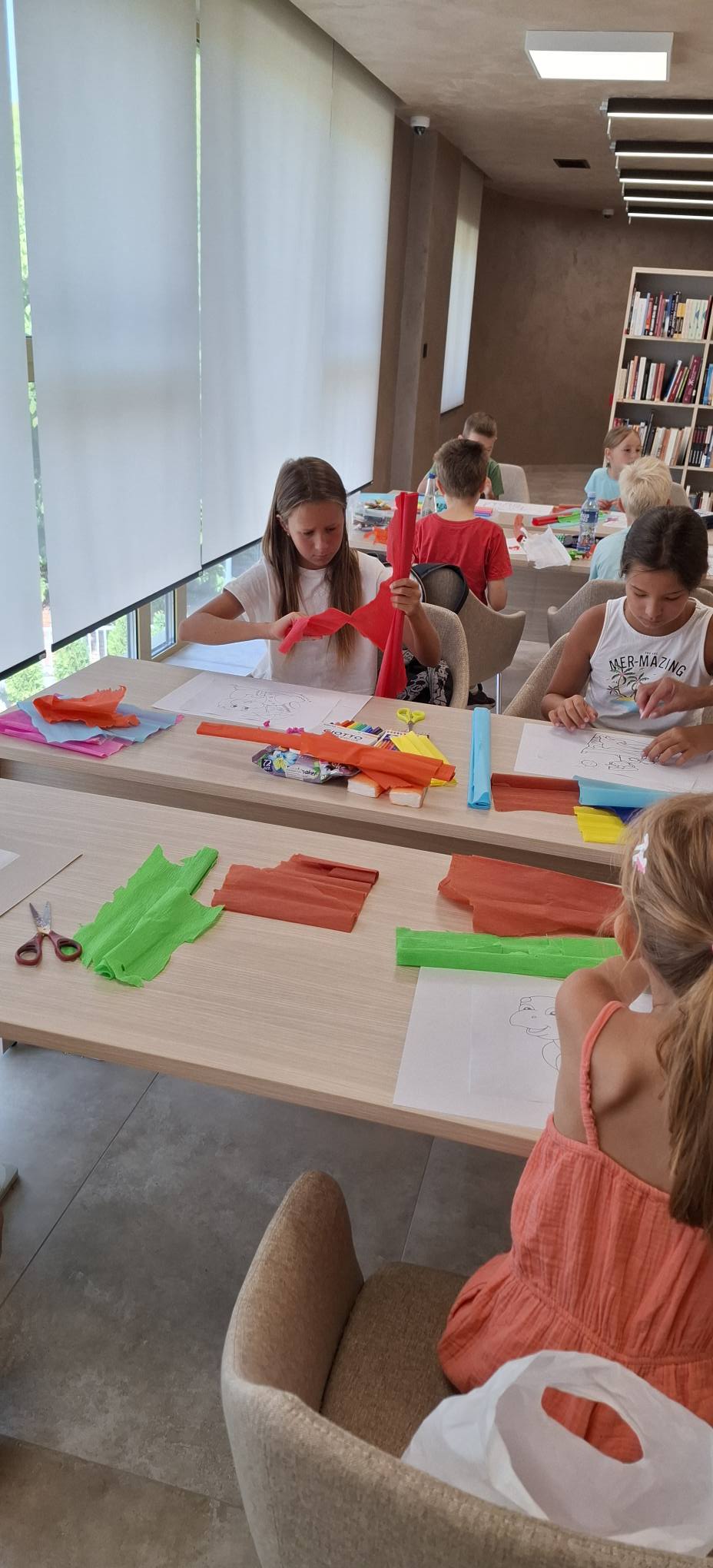 Сецкамо, лепимо Среда, 23. јул 2025. Радионице Весела среда у Библиотеци Још једна летња креативна радионица у нашој Библиотеци. Радили смо са креп папиром, сецкали, лепили и бојили. Уживали смо у прелепом амбијенту нове библиотеке. Погледајте галерију